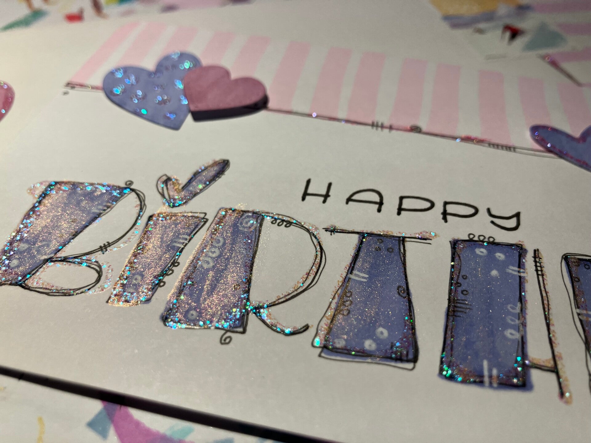 Entdecket Sii farbäfreudige, handgemalti Chartä mit Glitzerstaub. Jedi Chartä isch äs Unikat, geschaffä mit viil Freud und Sorgfalt. Lönd Sii sich vo dä Viilfalt und Kreativität vo minerä Arbet inspirieren. Viiil Freude bim güggslä!